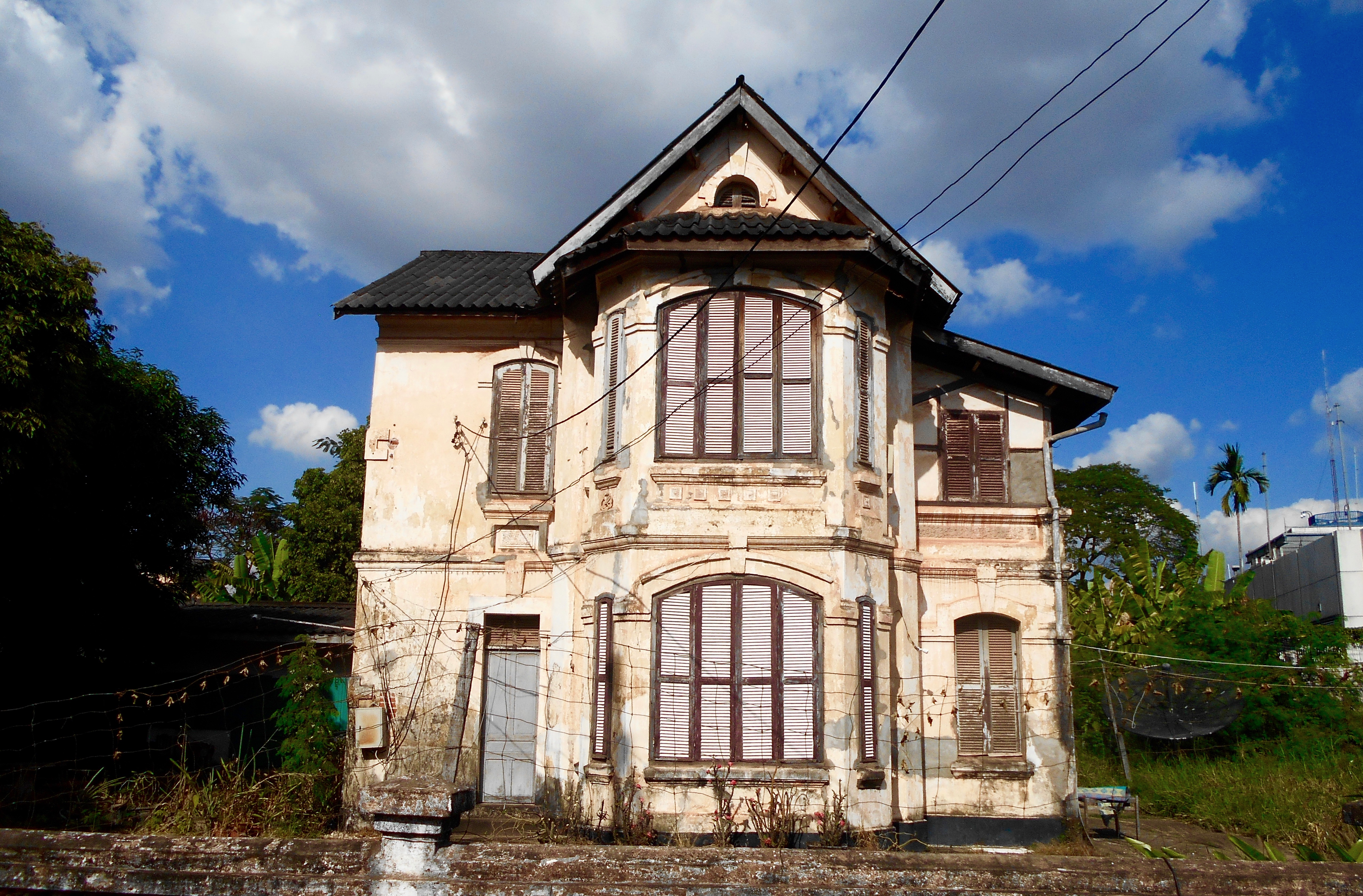 Throughout Vientiane, there are many old French colonial buildings. Many of them have been restored and refurbished, but many others are in various states of disrepair. [Click Here to Enlarge]
