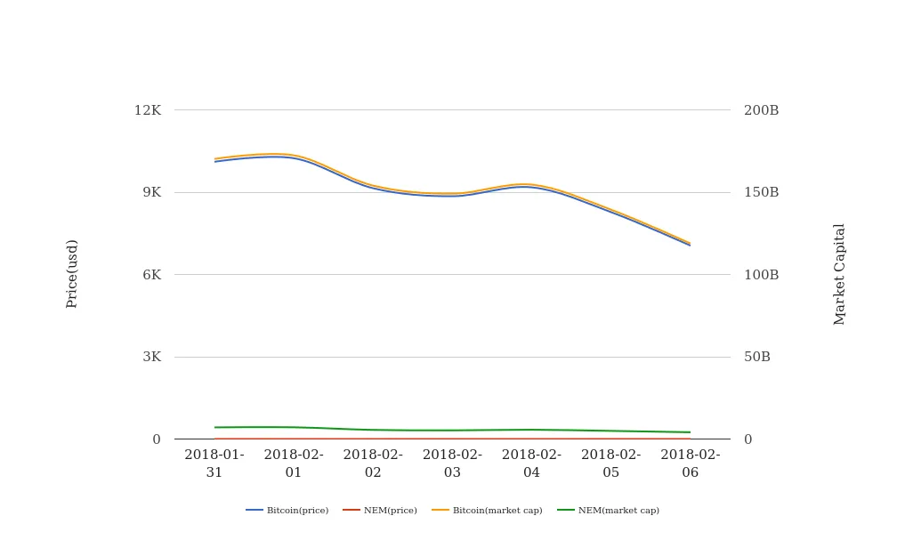 - Last Hour Price Changes: STEEM:-6.00 BTC:-4.21 ETH:-5.78 XRP:-5.53 BCH:-4.15 ADA:-5.37 LTC:-6.24 XLM:-5.75 NEO:-9.05 EOS:-5.41 XEM:-6.64