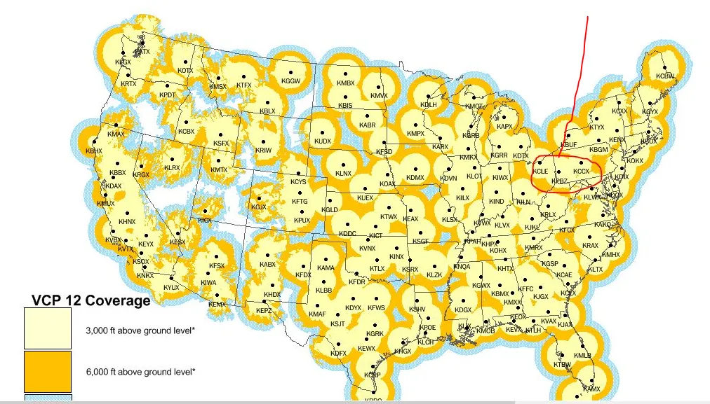 Nearest NEXRAD Station/Weather RADAR station emanating the frequency: KCCX, KCLE, KPBZ