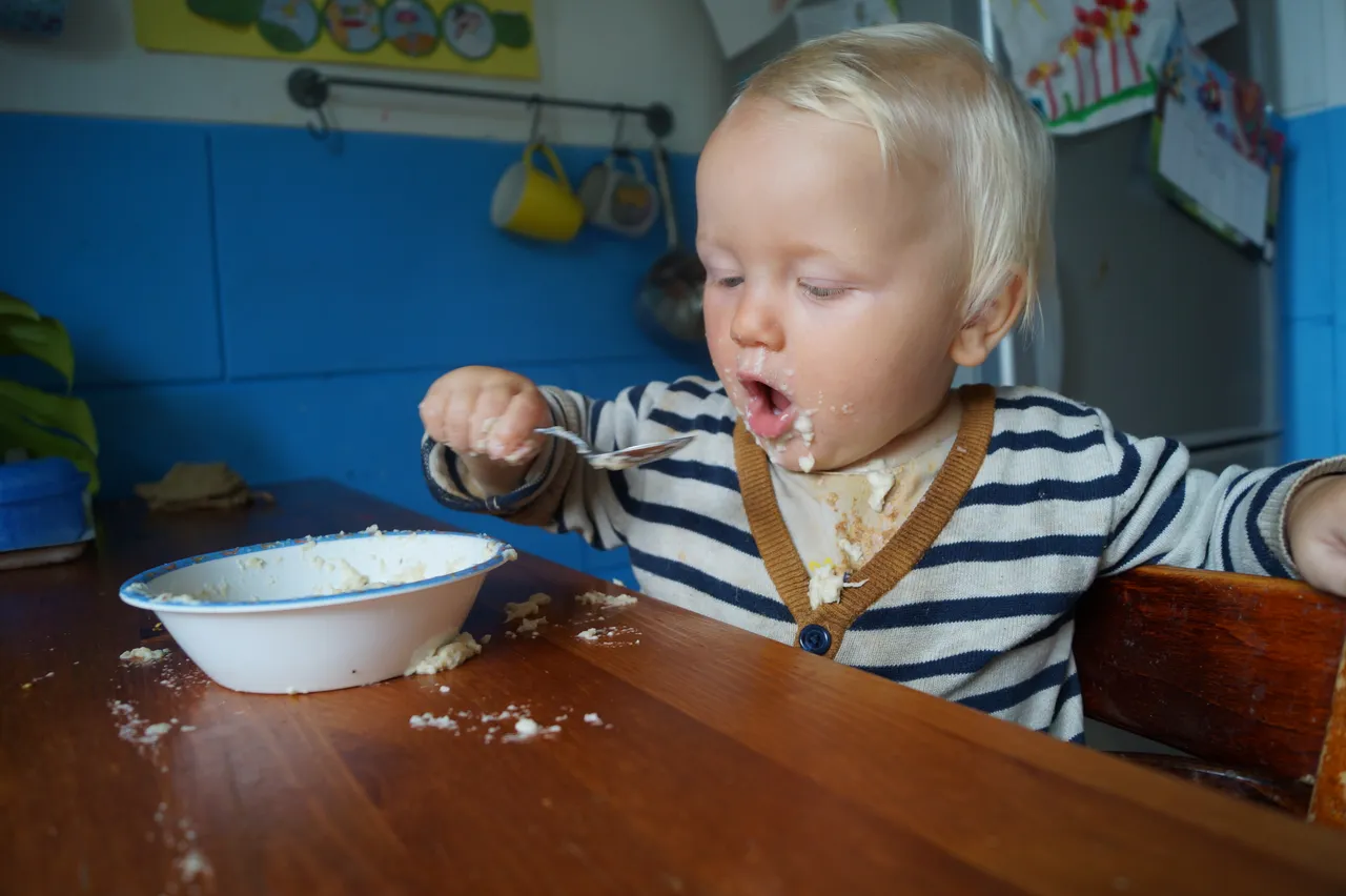 Nach jeder Mahlzeit muss zwar der gesamte Küchenboden geputzt werden, aber was soll´s... die Eigenständigkeit des Kindes geht über meine Reinlichkeits-Wünsche :)