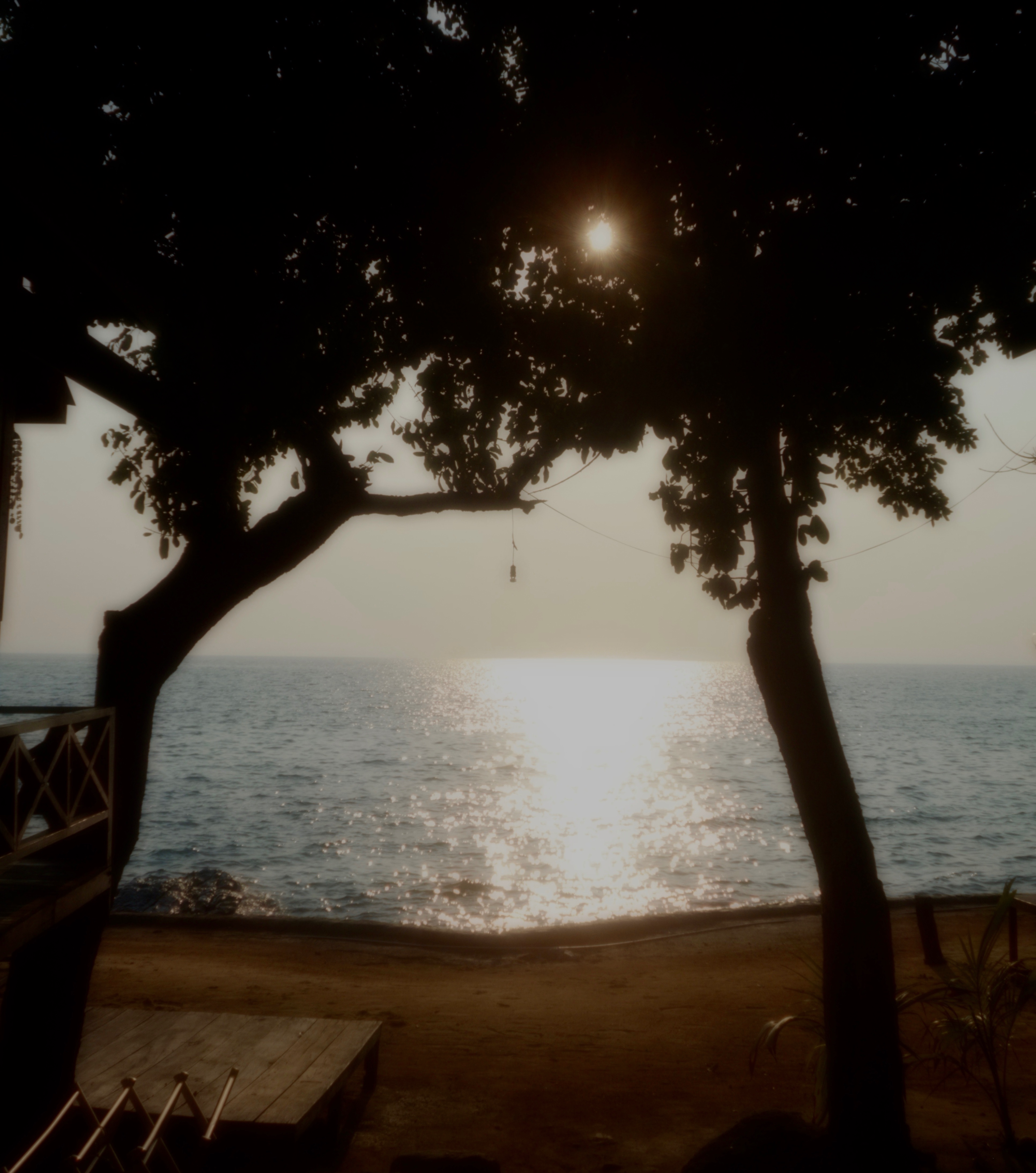 While only a few rays shone through the "tiny" pinhole in the foliage, the brilliant stream of light reflected off the ocean held the promise of another great day.
