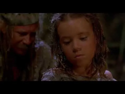 By then child actress Tina Majorino plays the role of Enola, a pivotal character in the development of the plot. Enola is an orphan girl who has a tattoo on her back indicating the location of the Dry Land, a legendary place that could be the solution to the eternal problem of the lack of dry land in a world covered by water.