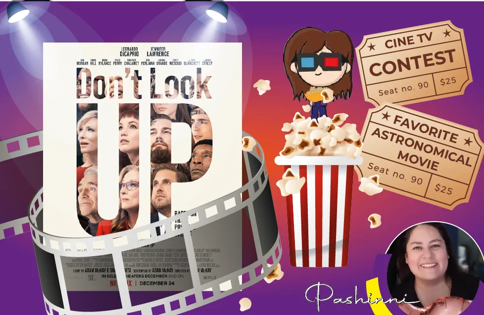 The movie I picked for this contest is: Don't look up, a movie that premiered in 2021 and has many big stars starring in it, like Leonardo DiCaprio, Jennifer Lawrence, Jonah Hill, Timothée Chalamet, Ron Perlman, Ariana Grande, Cate Blanchett, Meryl Streep, amongst many many others.