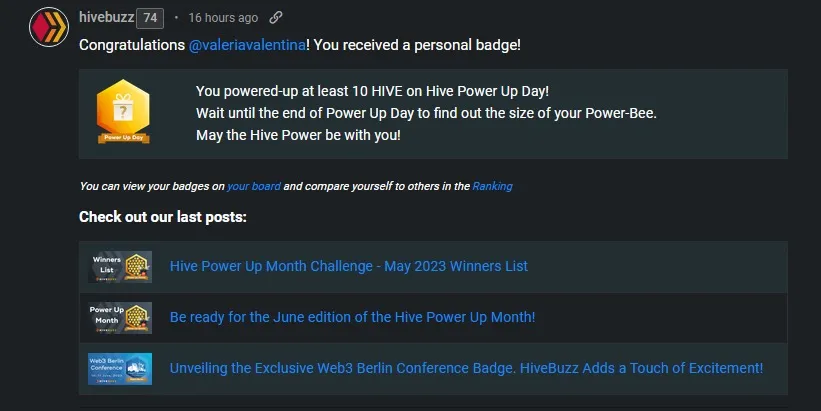 After doing the Power Up, it generated what would be like a transaction receipt. One always appears and remains registered on the platform, like everything else. ✔️