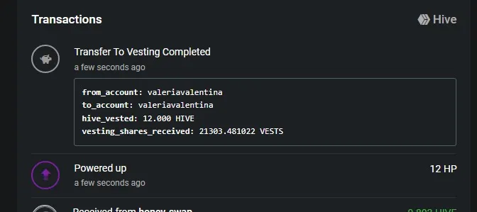 Después de hacer Power Up, se generó lo que sería como un recibo de transacción. Siempre aparece uno y permanece registrado en la plataforma, como todo. ✔️