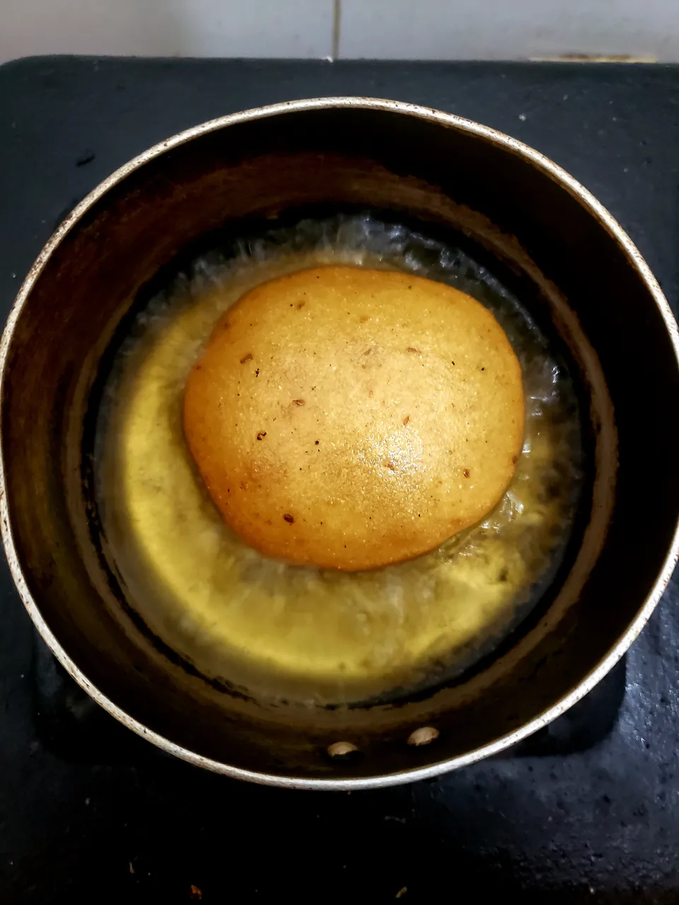 I didn't turn them over, I just bathed them in the same oil when the puffy part came to the surface, with the help of a spoon until they were golden brown.