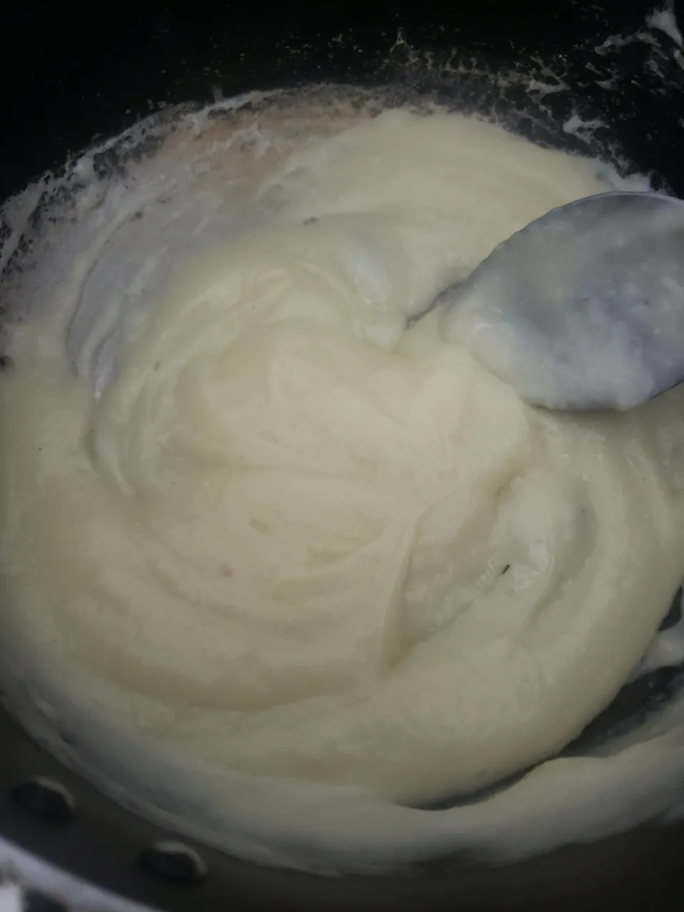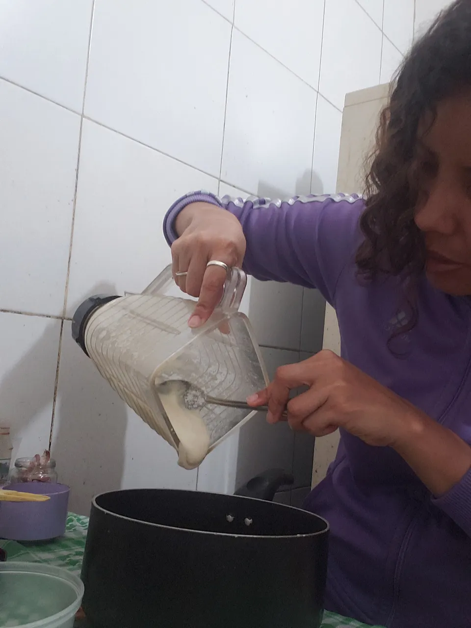 So don't hesitate to accompany these arepitas with a good vegan cheese. I filled a couple with a similar preparation to the cheese I had in the fridge. In the past days I blended some salted peanuts with boiled potato and cornstarch, cooked and then refrigerated. This is what you can see as a filling for a couple of these sweet arepitas.