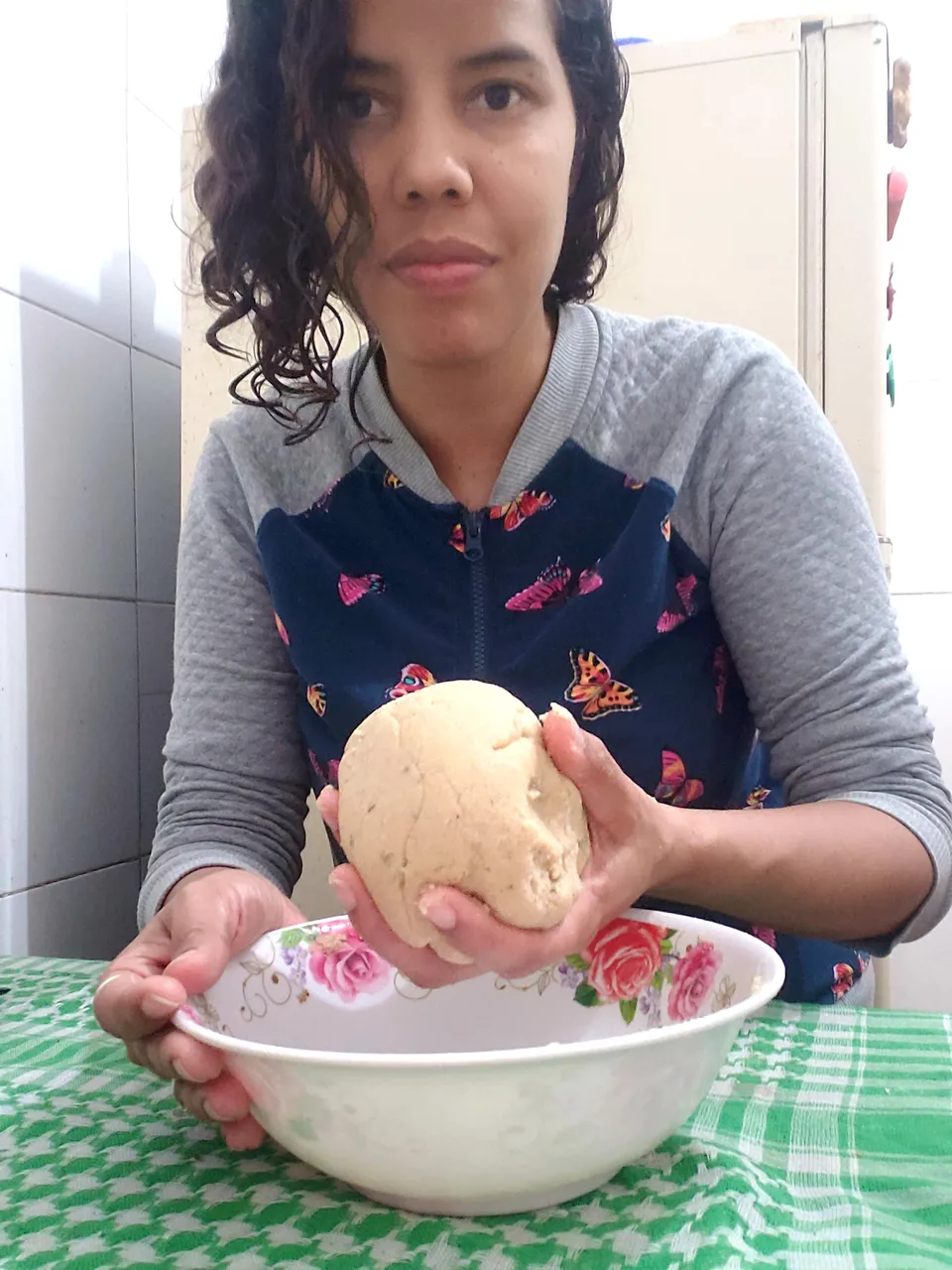 I added the flour and stirred with a fork until it took consistency and finished kneading with my hands for a couple of minutes or so. When the dough is still soft but no longer sticks to our hands, it is ready.