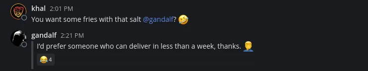 @khaleelkazi steps in and is clearly concerned about @gandalf's eating habits.