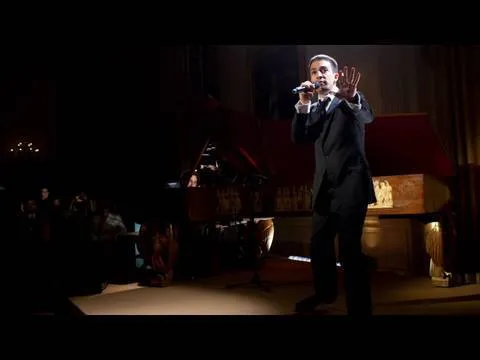 In 2009, Lin-Manuel Miranda was asked to perform in the White House. Instead of whatever they expected him so sing, he performed the first song from what was then going to be a concept album about Alexander Hamilton. You can actually see the crowd - including the Obamas - thinking, at first, that this is a ridiculous notion, and getting won over. On the piano is Alex Lacamoire, the future Music Director, Orchestrator, and Conductor for Hamilton. This is Lin-Manuel Miranda performing an early version of what would be come Alexander Hamilton:
