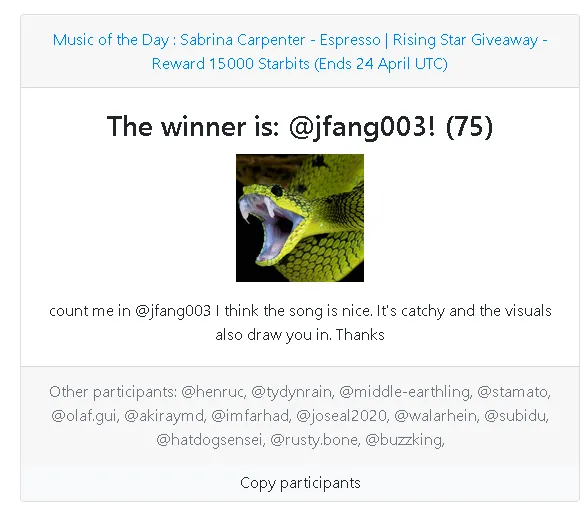 - I will use the Hive random comment picker to determine the winner. (Exclude bots will be set to selected.)