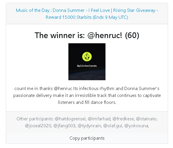 - I will use the Hive random comment picker to determine the winner. (Exclude bots will be set to selected.)