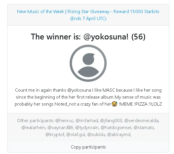 Congratulations @yokosuna your reward has been sent.