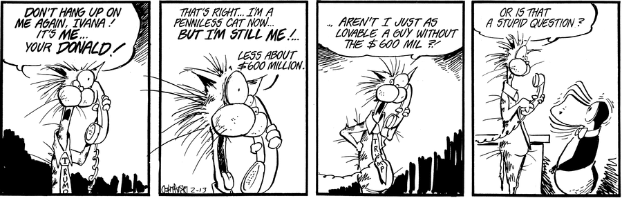 Trump has been a financially successful businessman. Whether he accrued his wealth morally is very much open to debate, but he has made a lot of money over the years. He was famous enough for a cameo in Home Alone II: Lost in New York (1992), and even before that, Bloom County poked fun at him by transplanting his brain. That was a weird story arc. To be fair, I didn't read it then. I discovered the collected comics in one of my parents' books some years after it was first published.