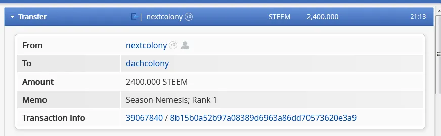 Die ersten Yamato Season im Nextcolony Universum ist Geschichte. Wir haben Platz 1 in dieser Season erkämpft und damit eines unserer Ziele erreicht. Bereits nach wenigen Minuten hat @dachcolony den Season Reward in Höhe von