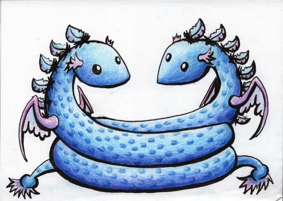 Most of my dragons aren't the stereotypical lizard like dragons you see everywhere. I avoid those as they have already been drawn in many ways by many more masterful artists. Instead, I find inspiration in making my dragons interesting in their own ways. They have recognizable and relatable personalities with certain unique features.