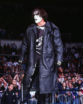 The hero of the story was Sting. A WCW loyalist who, until very recently in 2014, was known as the biggest wrestling star to never work for Vince McMahon's WWF. With a character that was blatantly borrowed from the cult movie "The Crow", Sting played a dark, silent vigilante, who challenged the nWo after all other heroes had fallen. The build up to the Crow character had Sting not say a word for over a year, and instead of wrestling in the ring, he would appear in arenas up on the rafters. It was really cool wrestling storytelling that finally, after much anticipation for months and months, would culminate in a match at WCW's biggest event of the year, StarrCade in December 1997, between the Batman like hero Sting and the ultimate bad guy Hulk Hogan for the WCW championship.